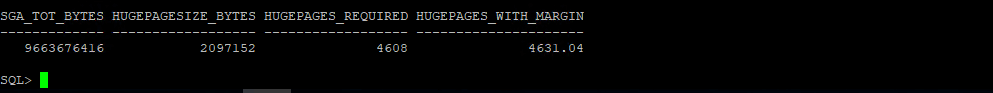 ROUND((:sga_size * 1024 * 1024 * 1024) / (2048 * 1024), 2) AS HugePages_Required,